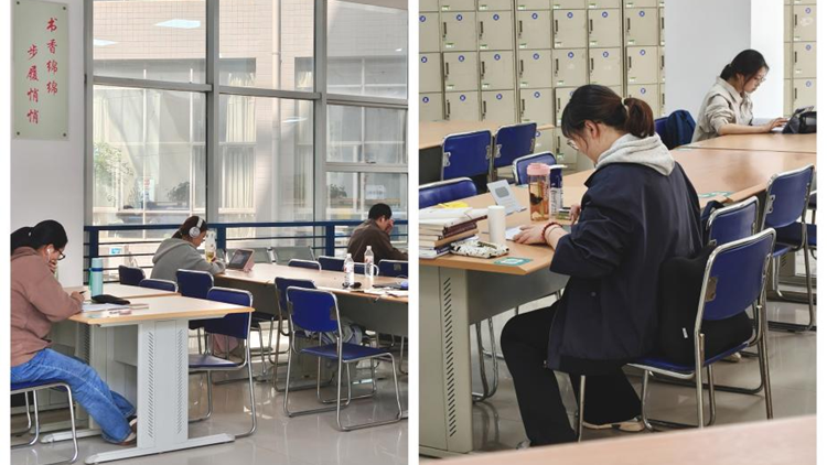 图书馆内同样是一派繁忙而宁静的学习景象。所有阅览室和自习区均正常开放,同学们或埋头苦读,或认真做着笔记,沉浸在知识的海洋里。