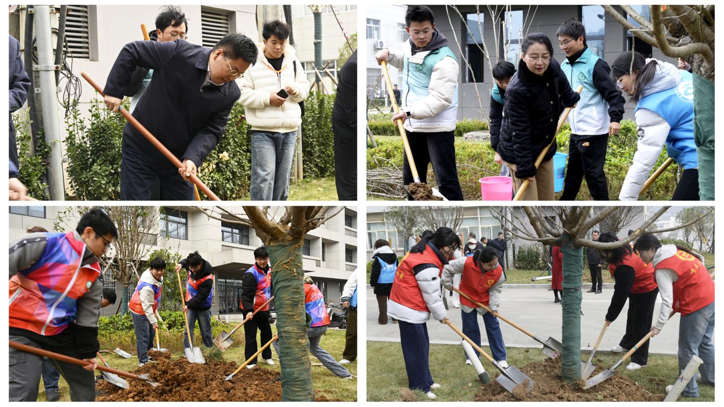 春风吐绿,草木始萌。3月12日,在第48个植树节到来之际,我校在丹江校区组织开展义务植树活动。全体在校校领导,相关部门负责人及50余名学生志愿者共同参与,以实际行动为校园添绿,践行绿色发展理念。