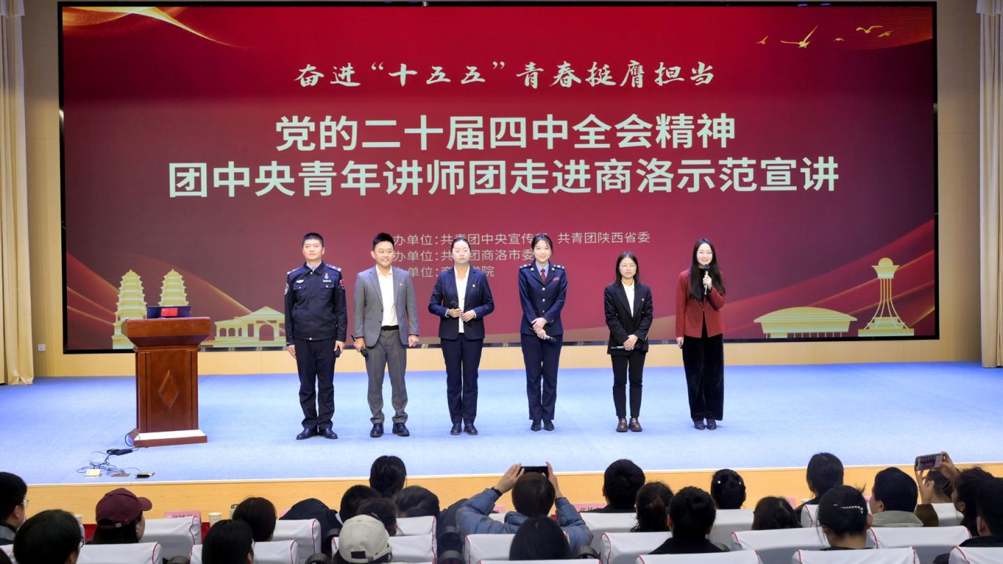 为深入学习贯彻党的二十届四中全会精神,引导广大青年深刻把握“十五五”时期发展蓝图,积极投身中国式现代化建设的伟大实践,11月22日,团中央青年讲师团走进商洛学院,举办“奋进‘十五五’ 青春挺膺担当”示范宣讲活动。商洛市基层团干部、各领域青年代表及商洛学院师生代表400余人参加活动。活动聚焦“十五五”时期的发展目标、战略任务与实践路径,围绕经济社会发展、科技创新、文化建设、民生改善、国防建设、绿色发展等领域热点,将国家战略发展与青年个人成长相结合,运用鲜活案例、详实数据和青年化语言,深入浅出地解读全会精神,引导青年准确把握国家发展大势,增强历史使命感和时代责任感。