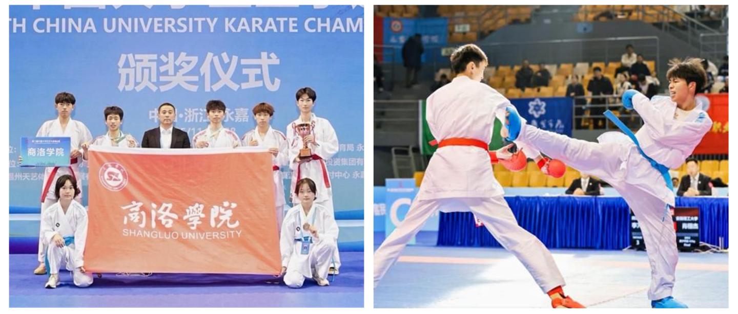 近日,在浙江省温州市永嘉县举行的第13届中国大学生空手道锦标赛上,我校空手道代表队奋勇拼搏、发挥出色,共获得3枚银牌、2枚铜牌及男子团体铜牌。队员范思宇荣获“优秀运动员”称号,体育教学研究部教师桑国鹏获评“优秀教练员”。
