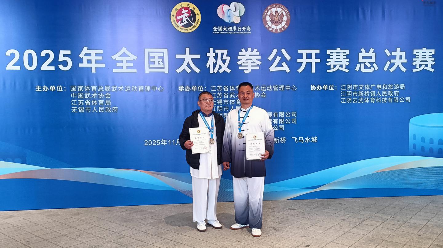 近日,由国家体育总局武术运动管理中心主办的2025年全国太极拳公开赛总决赛在江苏省江阴市隆重举行,我校教师张丹生、卫国强作为陕西赛区一等奖获得者参加了此次全国总决赛。经过激烈角逐,他们凭借扎实的基本功和出色的现场发挥,分别荣获传统项目三等奖和规定项目三等奖。