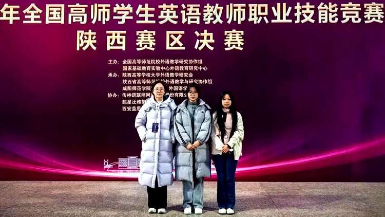 11月28日至29日,全国高师学生英语教师职业技能竞赛(陕西赛区)决赛在咸阳师范学院圆满落幕。我校3名英语专业学子与来自全省19所高校的214名选手同台竞技,经过激烈角逐,最终英语2401班陈可欣荣获一等奖,英语2402班李嘉欣、英语2401班杨笑妍荣获二等奖。