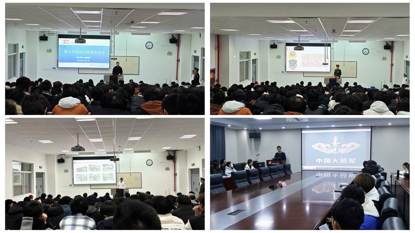 各学院开展形式多样的征兵宣传活动。马克思主义学院推行“宣讲+榜样”个性化指导;人文学院实施师生联动宣讲;数计学院搭建“入伍+就业”双促通道;电信学院开展“三个一”宣传服务活动;化材、生物等学院整合线上线下资源,构建全方位宣传网络;健康学院将征兵宣传融入考研、就业指导中;教育学院聚焦女兵征集,开展针对性动员;建工、经管、艺术等学院通过三轮宣讲、矩阵推送、升旗仪式思政教育等形式,实现全员覆盖、精准动员,形成全校征兵工作“一盘棋”格局。