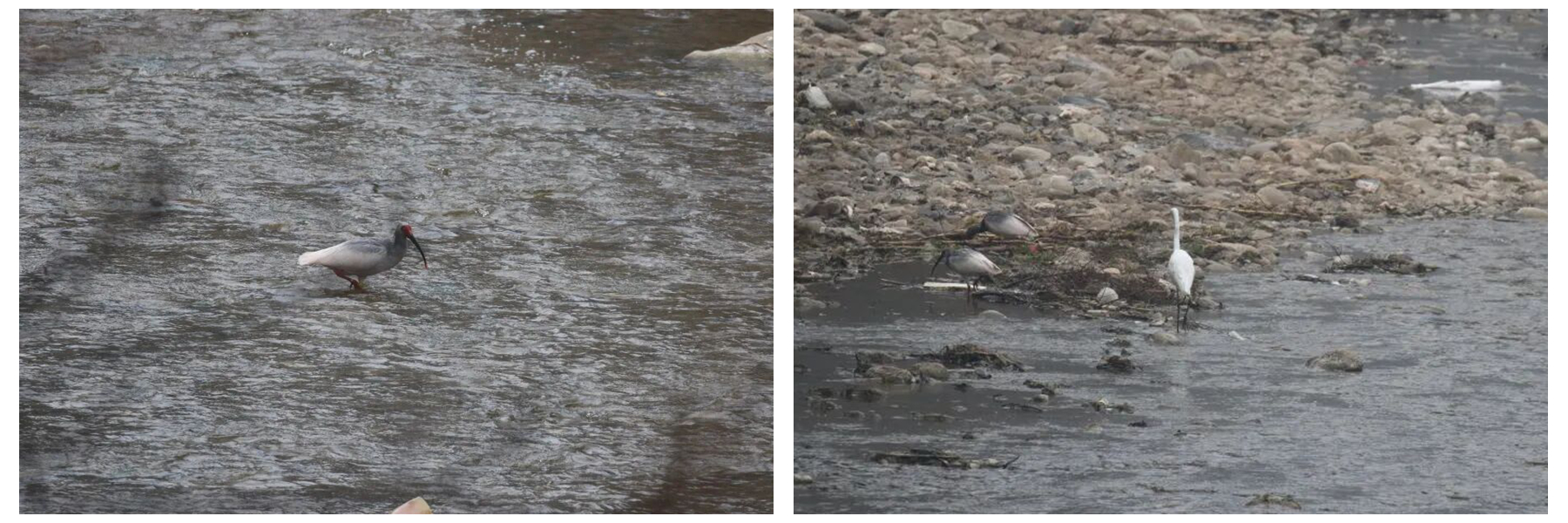 调查现场,石强博士凭借扎实的鸟类学专业知识和丰富的野外鉴别经验,敏锐识别出这两只鸟类嘴部细长弯曲、面部裸露皮肤呈朱红色的典型特征,结合其活动姿态综合判定为朱鹮。作为全球濒危物种,朱鹮曾一度濒临野外灭绝,经我国四十余年的系统性保护,种群数量从最初的7只增至7000余只,栖息地也以秦岭为中心逐步向外扩散。朱鹮作为湿地生态系统的旗舰物种,更是生态环境健康的“活体指标”,此次在南水北调中线工程重要水源涵养地——商洛丹江源区域现身,直观印证了当地生态环境质量持续向好的良好态势,彰显了区域生态保护工作的扎实成效。