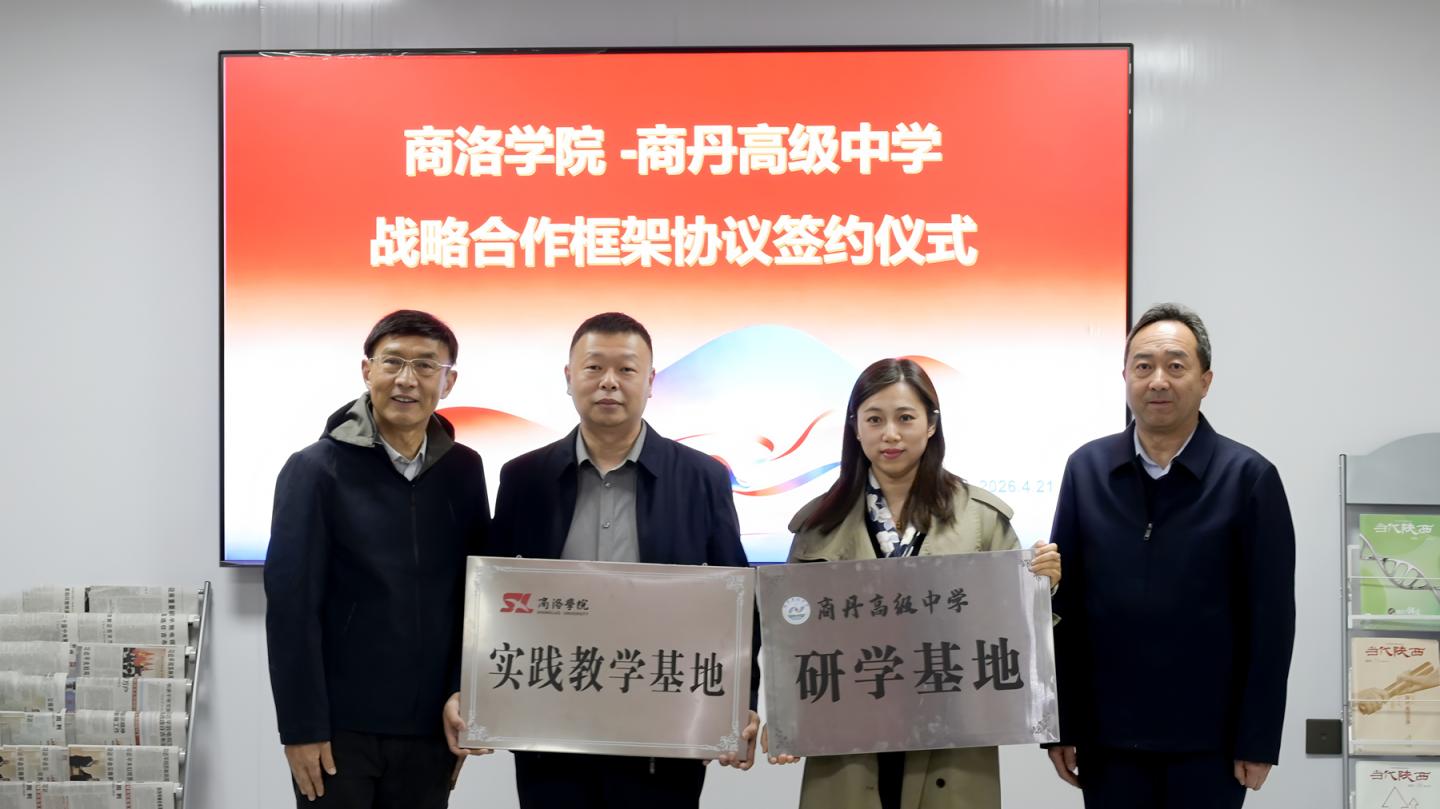 4月22日,商洛学院与商丹高级中学战略合作框架协议签约仪式在商丹高级中学举行。商洛学院副校长张向东出席签约仪式并讲话。商丹高级中学校长白涛致辞,商丹高级中学副校长王求亮主持签约仪式。