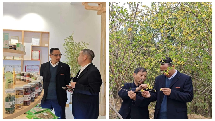 会后,王学军一行参观了新雨丹中药材科技产业园及山茱萸和连翘基地。学院团队与企业工程师团队围绕中医药产业及如何提高连翘产品质量和药效进行沟通交流。